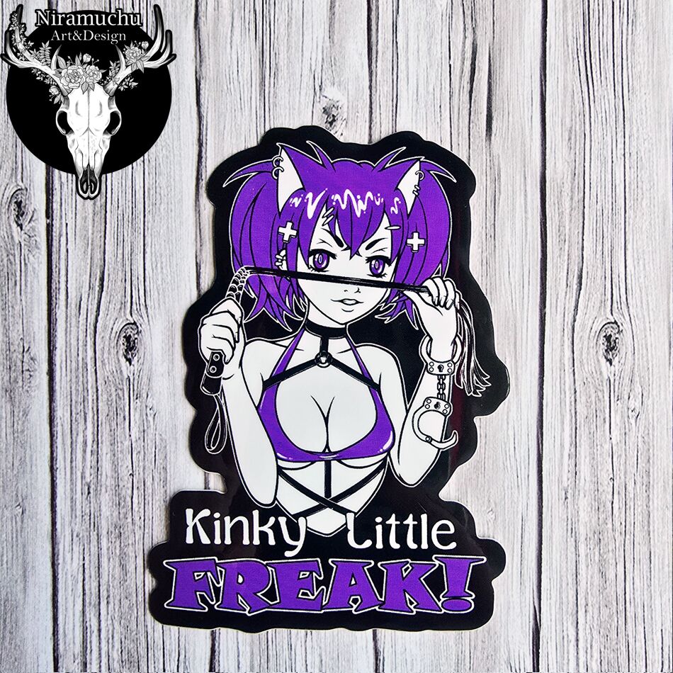 Oman mallistomme vinyylitarra “Kinky Little Freak”-tekstillä. Liimaa asennetta puhelimeen, läppäriin, kalenteriin, tai mihin vaan keksit!