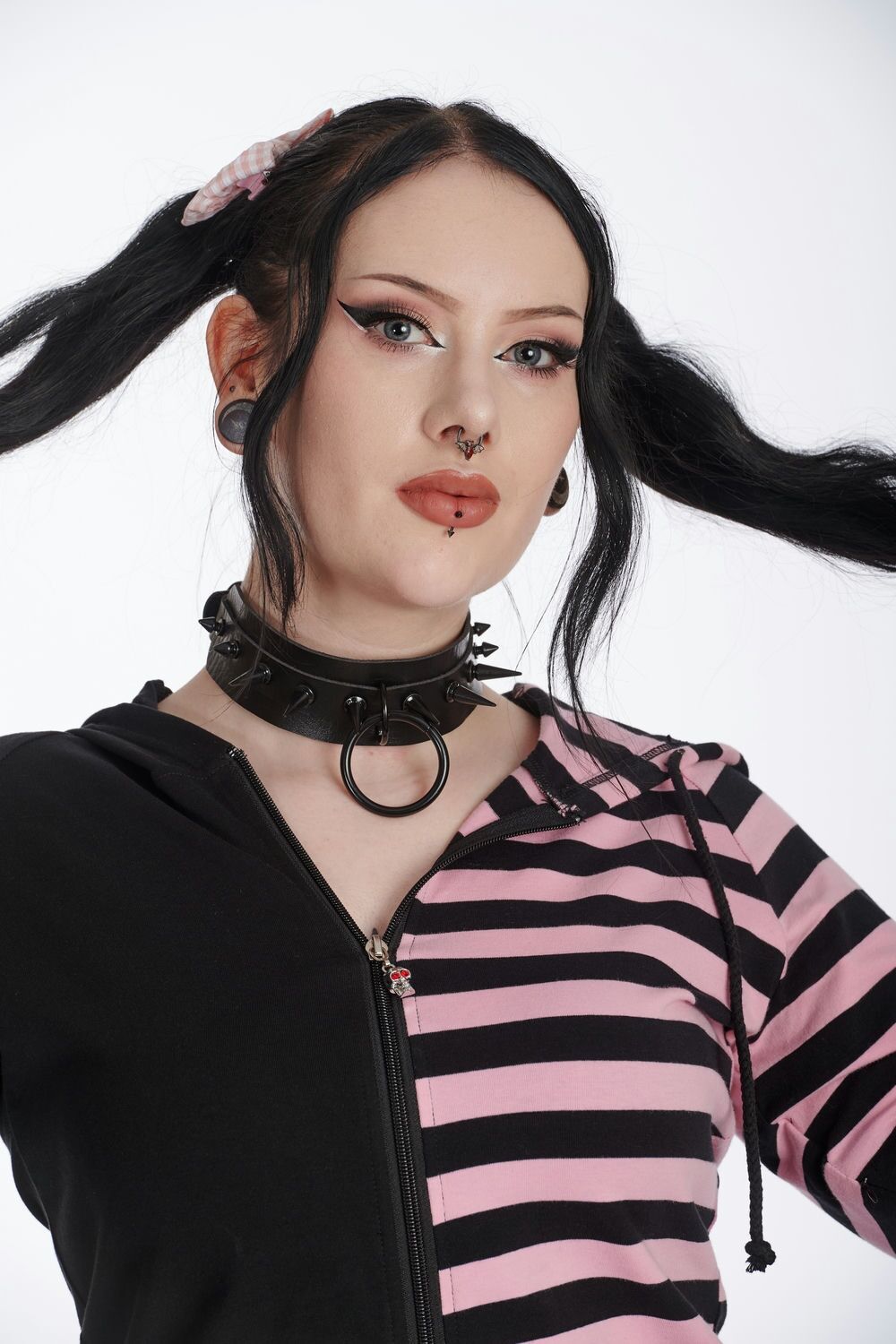 Näyttävä niittikaulapanta mustilla niiteillä . Säädettävä solkikiinnitys.